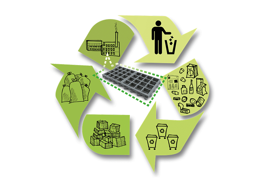 Aan het einde van de economische of technische levensduur kan de productkringloop volledig worden gesloten. De oude TTE®-elementen kunnen worden hergebruikt om nieuwe TTEs of andere producten te maken.