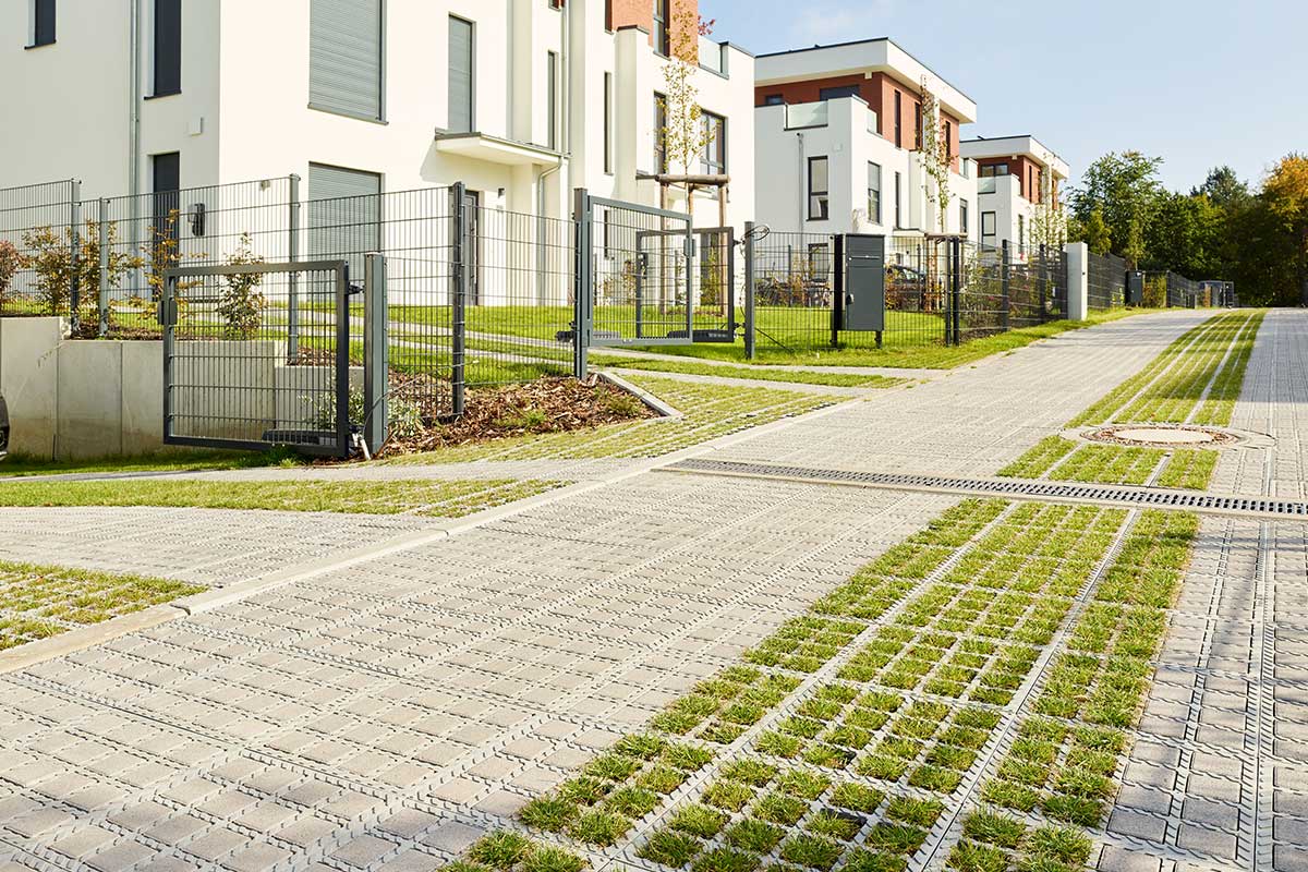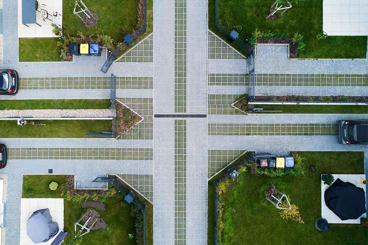 De vereniging van eigenaren van een nieuwbouwproject in Hohen Neuendorf bij Berlijn koos voor de ongeasfalteerde TTE® oplossing - met een geweldig resultaat dat laat zien hoe flexibel TTE® KLINKERS en TTE® GROEN gecombineerd kunnen worden.