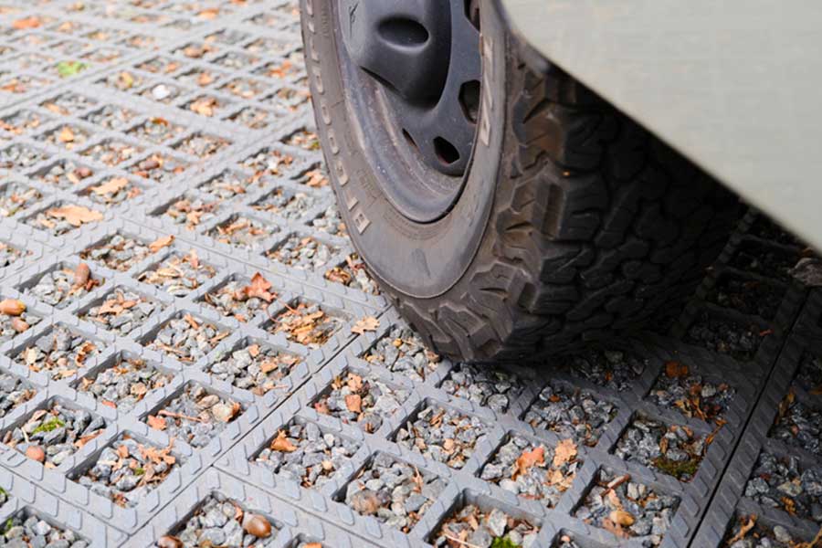 Permanent geëgaliseerde grindoppervlakken dankzij een rastersysteem