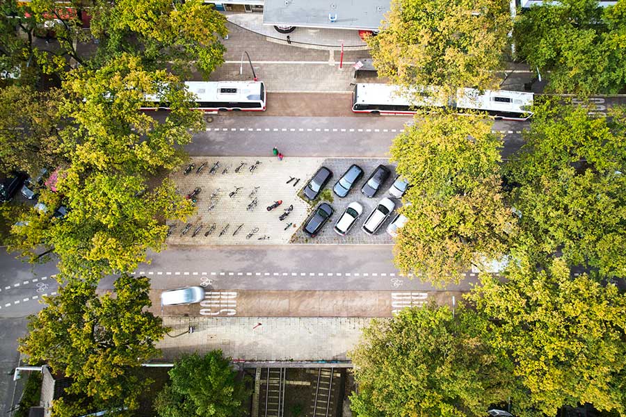 De lastverdelende eigenschappen van het TTE®-systeem beschermen de wortels van de bestaande bomen tegen verdichting. Bovendien zorgt TTE® voor een goede watertoevoer voor de bomen dankzij de niet-afgedichte bouwmethode.