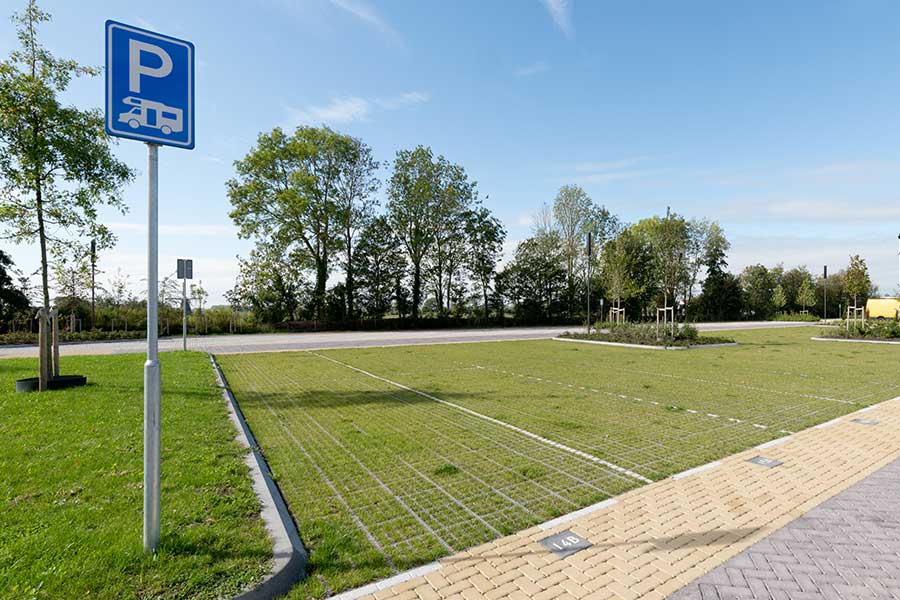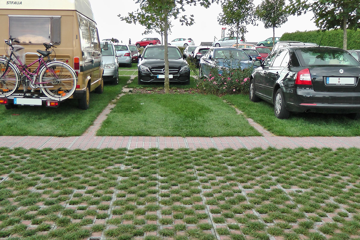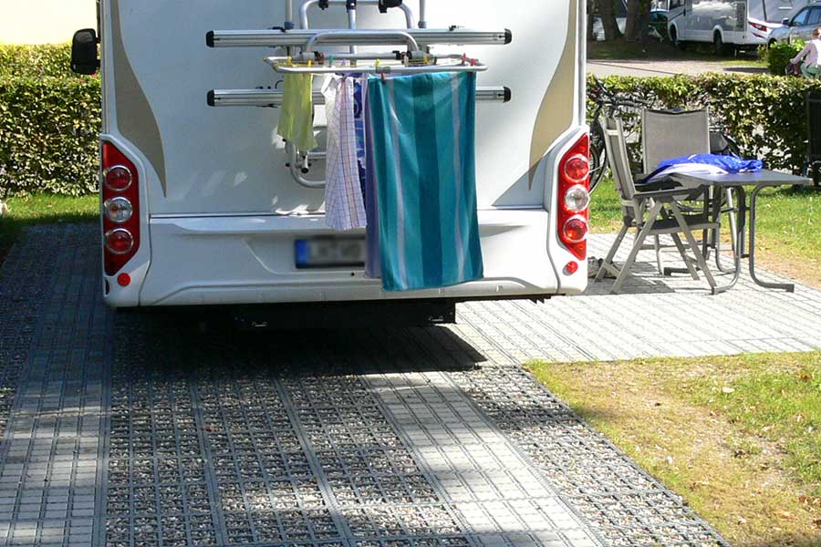De familiecamping in Kühlungsborn heeft gekozen voor de duurzame en flexibele bestrating van de camperplaatsen met het TTE®-systeem. De focus lag op het stabiliseren van het gazon zonder het af te dichten. Het terrein wordt beschermd tegen beschadiging door stilstaande voertuigen en blijft waterdoorlatend.