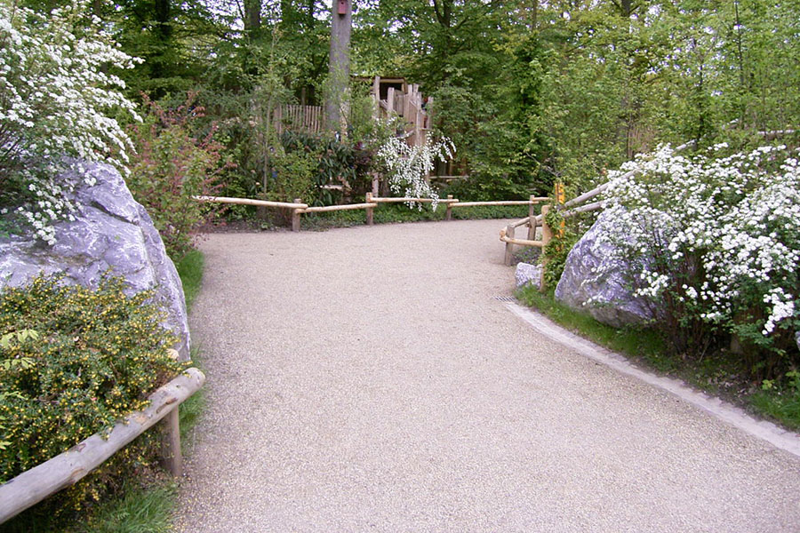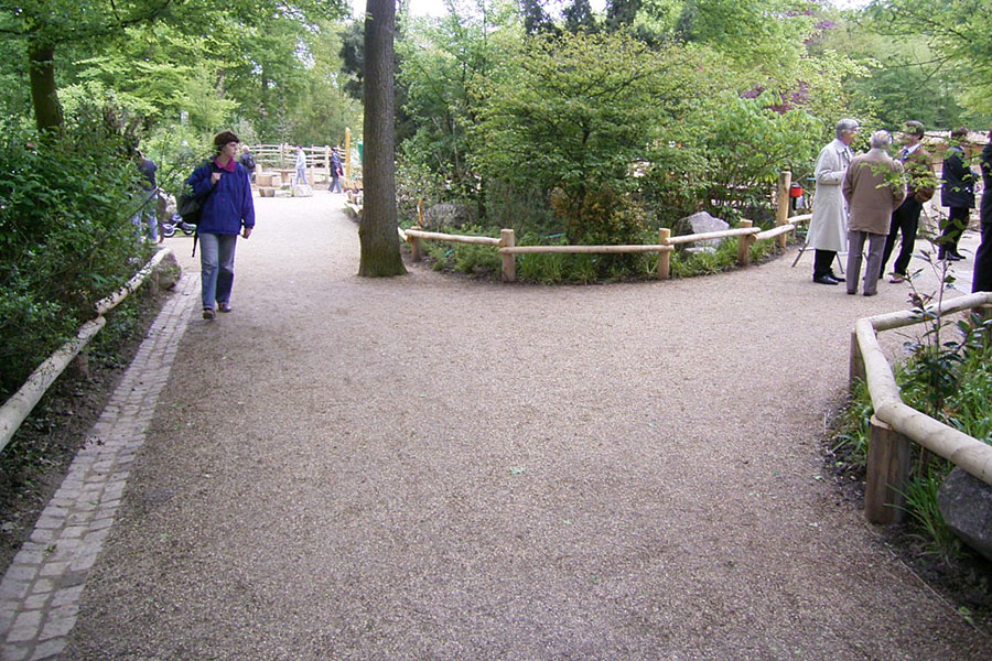 Al meer dan 17 jaar kunnen bezoekers van de dierentuin van Münster met het TTE®-systeem als versteviging over een grindpad lopen. Sindsdien is het terrein onderhoudsvrij en kunnen ook zware bestel- en transportvoertuigen erop rijden.