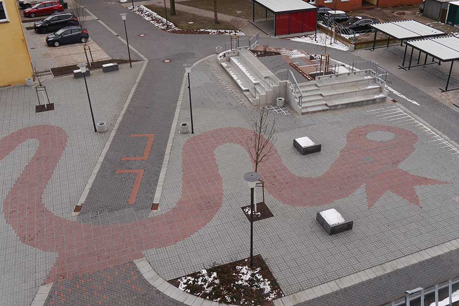 De middelbare school in Wittenberg koos niet alleen voor TTE® vanwege de afdichtingsvrije oplossing. Uiteindelijk waren ook de creatieve ontwerpmogelijkheden, in dit geval het heraldische dier van de school, overtuigend.